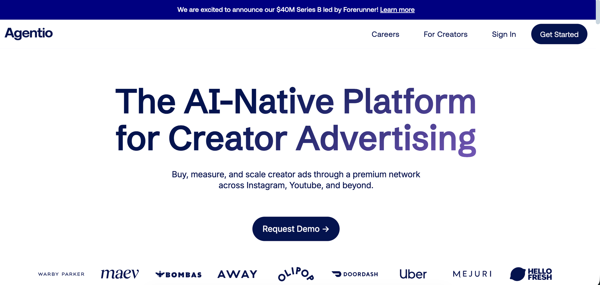 Agentio raises $40M Series B to automate creator-brand partnerships, cutting deal timelines from 45 days to under 24 hours.