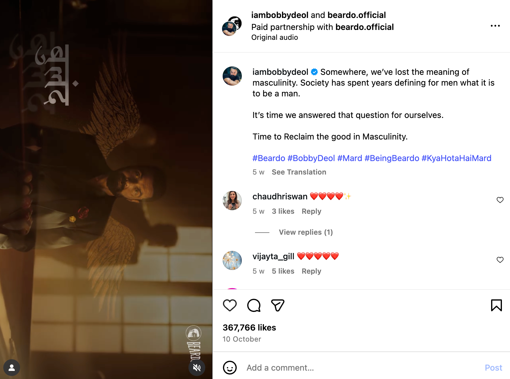 The campaign ran on Instagram, YouTube, and Facebook, positioning masculinity not as performance but as legacy built on character and courage. Beardo reinforced its brand identity as unapologetic, unfiltered, and focused on authentic self-expression, urging men to reclaim their identity with pride and purpose.