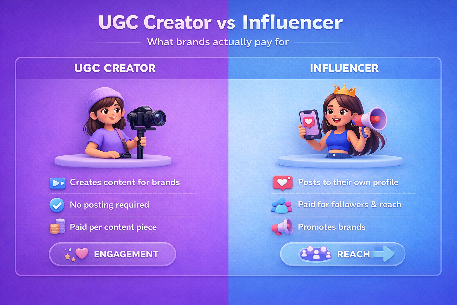 - Unlike influencers, UGC creators are paid for content, not reach or followers